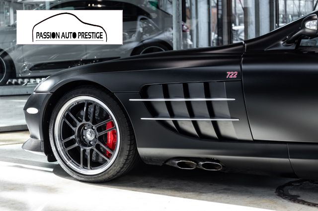 Sur cette version plus typée sport de la SLR, de nouveaux éléments aérodynamiques ont été inclus et optimisés, les jantes sont des 19 pouces noires en alliage léger et le cockpit a été restylé dans des tons plus sportifs. Le système de freinage est constitué de larges disques de frein en céramique assurant un freinage parfait. Elle arbore des logos « 722 » sur les ailes avant. Ces caractéristiques sont directement issues des circuits de courses automobiles. Le V8 ne passe pas à 722 chevaux comme on aurait pu s’y attendre, mais à 650 chevaux, soit un gain de 24 chevaux par rapport à la première version ; le couple est désormais de 820 N m et développe une puissance de 478 kW / 650 ch.