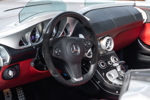 La Mercedes SLR Mclaren est une supercar que le constructeur automobile Mercedes-Benz et McLaren Automotive ont développé conjointement de 2003 à 2010, lorsque Mercedes-Benz possédait 40 % de McLaren. Sa désignation est un hommage à une voiture de course légendaire : le 300 SLR de 1955. Simultanément, le SLR pour « Sport, Leicht, Rennsport » (« Sporty Light Racing » en anglais, « voiture de course légère » en français) rappelle les bolides Mercedes-Benz qui remportèrent tant de victoires dans les années 1930, ce qui leur valut leur célèbre surnom « Flèches d’Argent ». Elle était en concurrence directe avec l’Aston Martin DBS V12 et la Ferrari 599 GTB Fiorano. L’assemblage se faisait dans l’usine McLaren de Woking et la carrosserie était fabriquée dans son autre usine de Portsmouth.